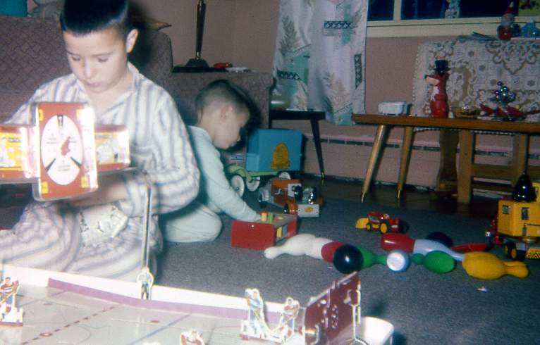 Mike and his brother with their toys