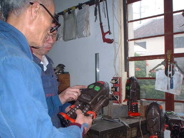 Craftsmen at Tin Tom Toys factory in Shanghai China creating Thunder